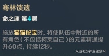 元素精通280点(元素共鸣100+教官120+科莱4命60)