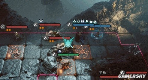 第二回合利用弓骑兵二技能,卡一个位置,可以将左上方弓兵、枪兵暂时卡走,大幅降低统帅承伤压力。