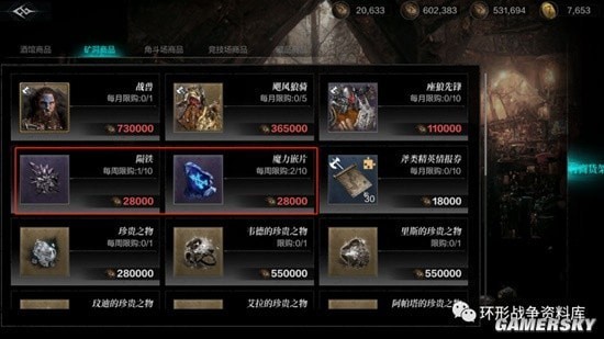 2、如果矿洞币不着急兑换战兽的,也建议大家优先兑换魔力嵌片/陨铁,后面这两个武器强化材料的需求量也巨大。