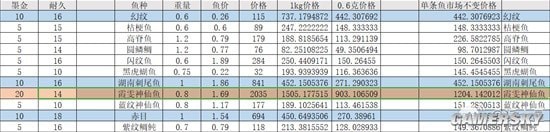 我们首先来看一个简单的表格(这里的数据可能有些误差,看个大概就行,比较详细的鱼价会在后面统计完数据放出来)