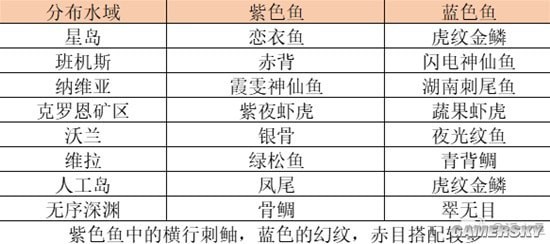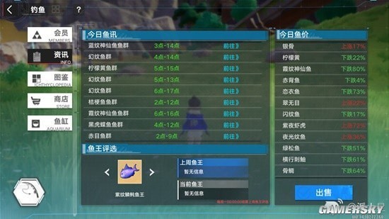 蓝紫色鱼的搭配几乎是固定的,这个稍微知道就行,地图上都有,以后钓多了自然熟悉。有些搭配可能在地图上看不到,不用急,等鱼情刷新就会有了。(鱼情每过一段时间都会刷新,鱼价是每天0.00刷新)