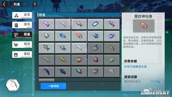 选择好鱼后,建议点击图鉴,图鉴的右下脚有分布水域,知道分布水域后去地图上找,非常的方便。钓10天左右基本上就非常熟悉鱼的分布了。
