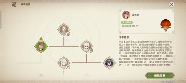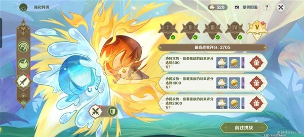 今天的赛事进展进入第六轮挑战决赛:旅行者和Mpc海妮耶进行第六轮挑战决赛。(第六轮挑战决赛中,打败海妮耶两次后,触发剧情。最后,打败愚人众)。