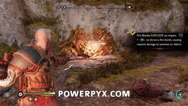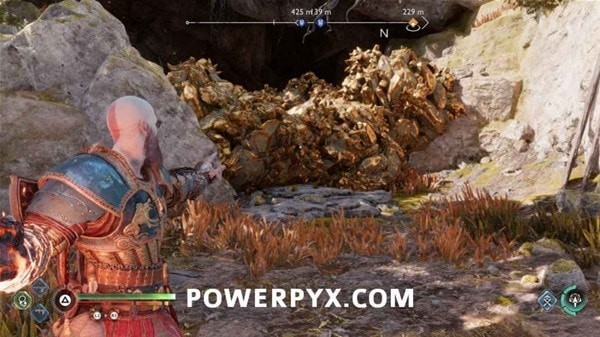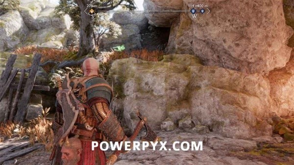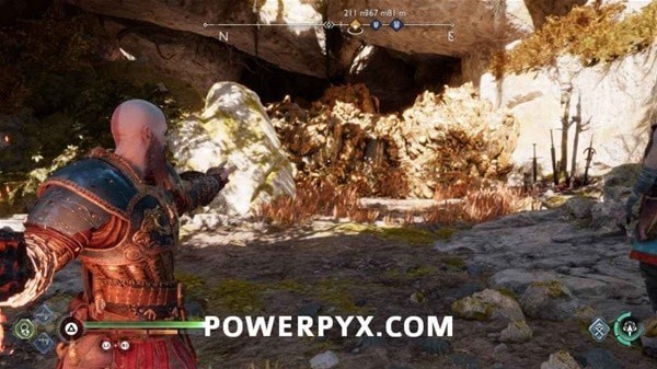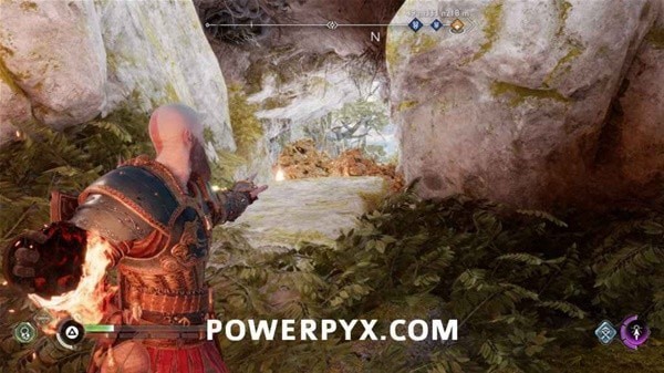 继续前进,打掉左侧岩石上的奥丁渡鸦,再炸掉挡路的石头,前方触发BOSS战。