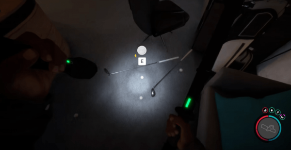 5、在房间内部的地面上,可以看到两个高尔夫球杆。