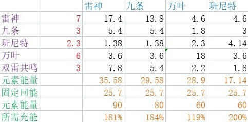 雷九万班是一个三保一配队,各角色为雷神辅助的增益如下: