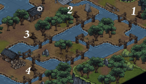 按照图中木人标识数字,14444操作木人即可前往右上的木材厂获取原木修复木人2