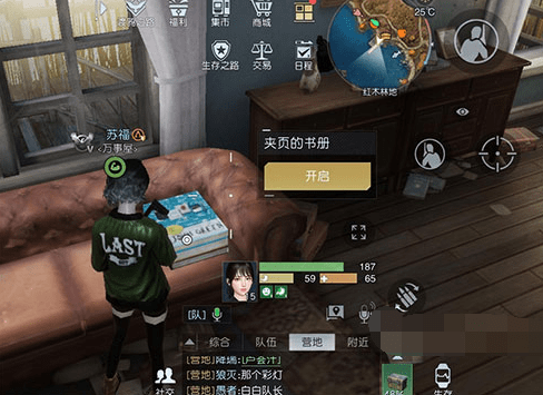 2、进入房间后可以看到沙发,在沙发上与夹页的书册互动就可以获得藏宝图。