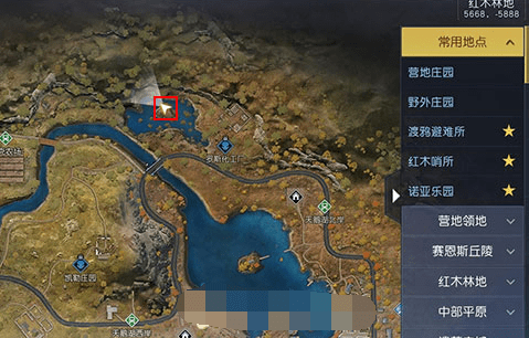 1、进入游戏后前往红木领地,然后俩到图中所示红框位置。