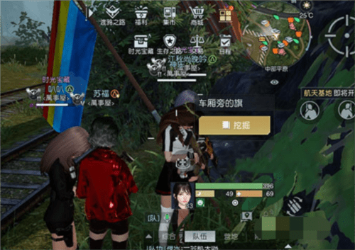 2、轨道旁,可以找到车厢边的彩色旗帜,挖掘即可获得宝藏。