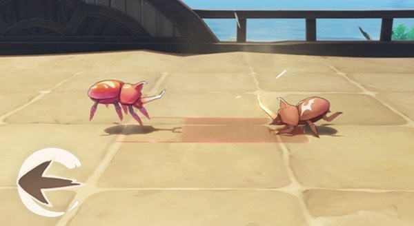 7.如果两只鬼兜虫同时发起攻击,我方将被撞倒,无法对对手造成伤害。注意发动攻击的时机,如果改变决策,可以取消蓄力,避免无谓的体力消耗。就是不要和对方硬碰硬,可以连着击退对手或适当后撤。