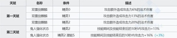 第二天赋则是一个“被平衡”的天赋,技能期间与结束后10秒内的加攻13%,BUFF量不及异德的技能期间加攻20%,换来的是技能结束后还能持续10秒的状态。