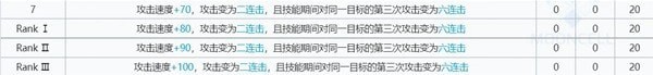 攻速提升,攻击变为二连击,且对同一目标的第三次攻击变为六连击