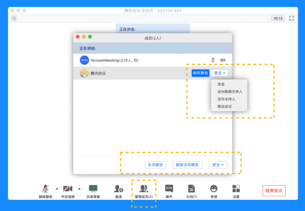 会员版:最多可设置2位联席主持人,达到设置上限后,再次点开用户列表,想要设置其他人时,将不再展示联席主持人选项。