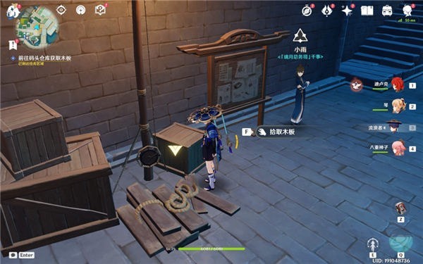 来到璃月声望npc处,拾取一旁的木板。