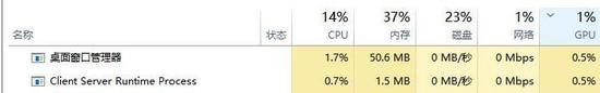 3、重新启动系统后打开“任务管理器”可以看到gpu占用下降了很多。
