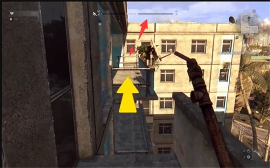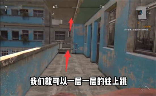 5、来到下图位置之后,往前面跳,然后一直爬到楼顶。