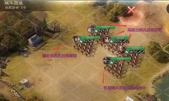 辅助骑兵武将站在后排,为前方武将提供帮助