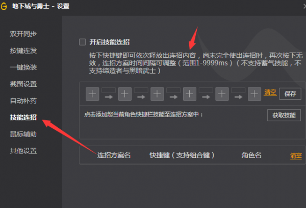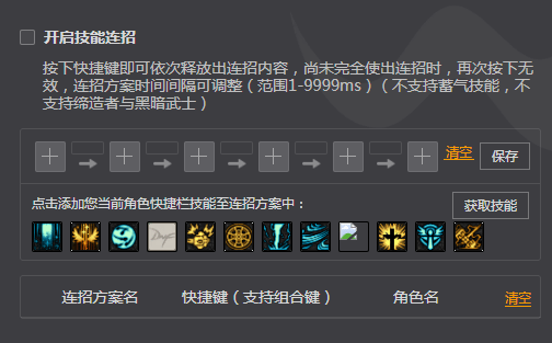设置步骤六:添加技能以后,游戏玩家点击保存。然后设置连发快捷按键。这样玩家在游戏中只需要按快捷按键一键连发出来了。
