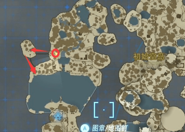 3、初始空岛西部有个小桥,小桥附近湖里小小岛上有块石头,石头下有个呀哈哈。