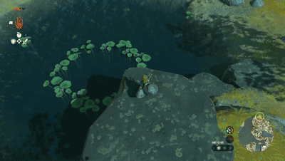 浮在水面上的树叶,一看就感觉不简单的样子。跳上去点调查即可激活呀哈哈。