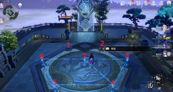 1、7号点上的核心放置到1号点,此时自动拾取原1号点核心。