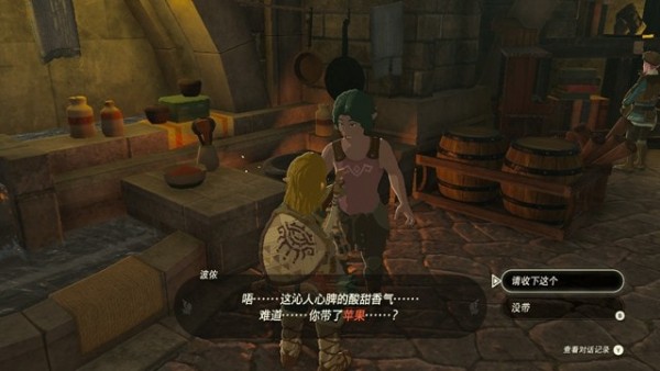 3、这里可以跟波侬交谈,可以给他一个苹果,完成今日菜单的委托。
