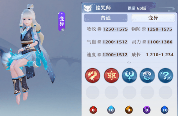 平民65级的宠物中我最推荐的就是绘咒师,因为她拥有同期宠物中最高的成长和物攻,物防也特别突出,气血和速度都很优秀,65级珍兽挑战成功就可以获得了。常用PK直接打造成隐攻,如果之前已经培养了白鹿、灵蝶仙子或者孔雀姬的话,那么可以直接血攻走起,也可以当成是配速来养成,全能就是她的代名词!