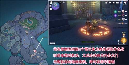 解密方式:将雷元素方碑附近的怪物清理掉后解除封印,将四个雷元素方碑点亮后获得。