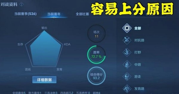 其实连跪的真实原因跟有没有加入护卫队并没有关系,难听地说就是部分玩家对自身技术问题找的一个借口,主要原因就是对战资料中的综合评分所导致的,综合评分跟对局英雄评分完全不同,能够更准确计算自身实力。