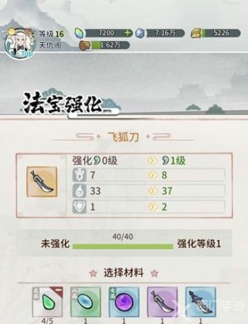 3、在法宝强化界面选择需要强化的装备,消耗部分的材料即可对装备进行强化,强化的属性会根据强化材料获得提升。